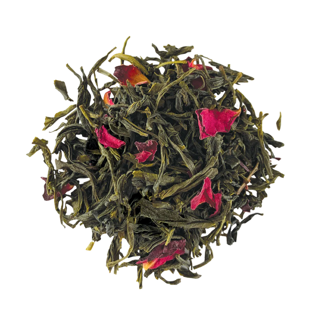 Biodegradable Tea Pouch. Single Origin Green Leaf Tea, Lychee and Natural Rose Flavour. Rose Petals. 10 bags per pack.
